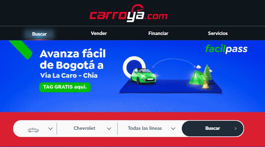 Carroya.com es una plataforma de compraventa de carros, motos y cualquier tipo de vehículo transable en Colombia, como camionetas, buses, furgones o camiones, entre algunos otros.