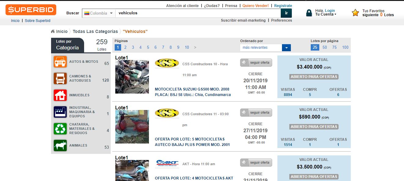 A través de las subastas en línea de vehículos usados se pueden adquirir bienes en diferentes estados de conservación por precios con hasta un 30% por debajo del precio del mercado. En este caso, hablaremos de las subastas online a través del sitio web Superbid, un portal especializado en conectar compradores con vendedores, que funciona en países como Argentina, Brasil, Perú, Chile y Colombia.