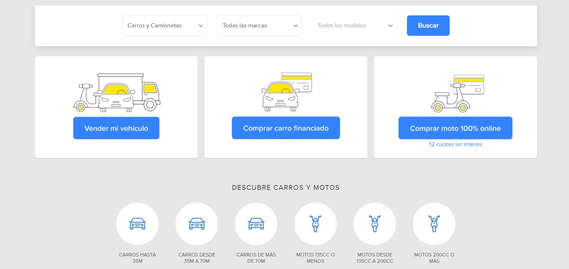 Tucarro.com es una plataforma perteneciente a MercadoLibre, orientada 100% a la compraventa de vehículos de todo tipo. En este portal encontrarás toda una variedad de marcas de carros, motos, camperos y camiones a tu disposición.