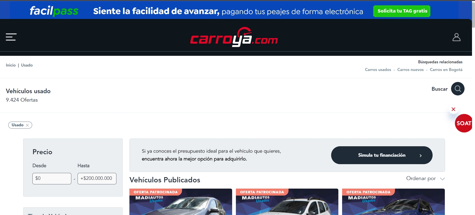 Carroya.com es otra excelente opción para encontrar ese campero usado que tienes en mente. En este portal de compraventa de vehículos encontrarás más de 16.000 unidades disponibles, además de opciones de financiamiento que te permitirán encontrar el modelo perfecto para ti.
