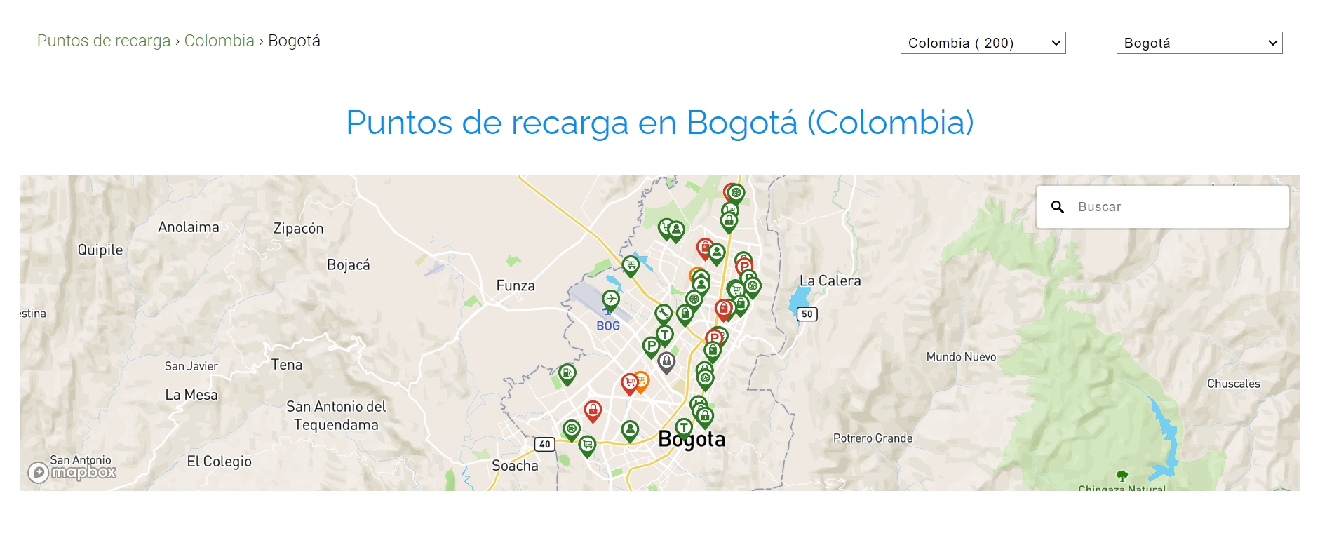 Electromaps es una plataforma española que concentra información sobre los puntos de carga de diferentes países, incluido Colombia. En ella puedes filtrar por ciudad y visualizar en el mapa la ubicación exacta de cada estación.