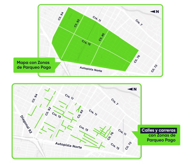 Para comenzar, las primeras zonas de parqueo estarán habilitadas en el polígono que forman las calles 94 y 76 entre la carrera 11 y la autopista norte.